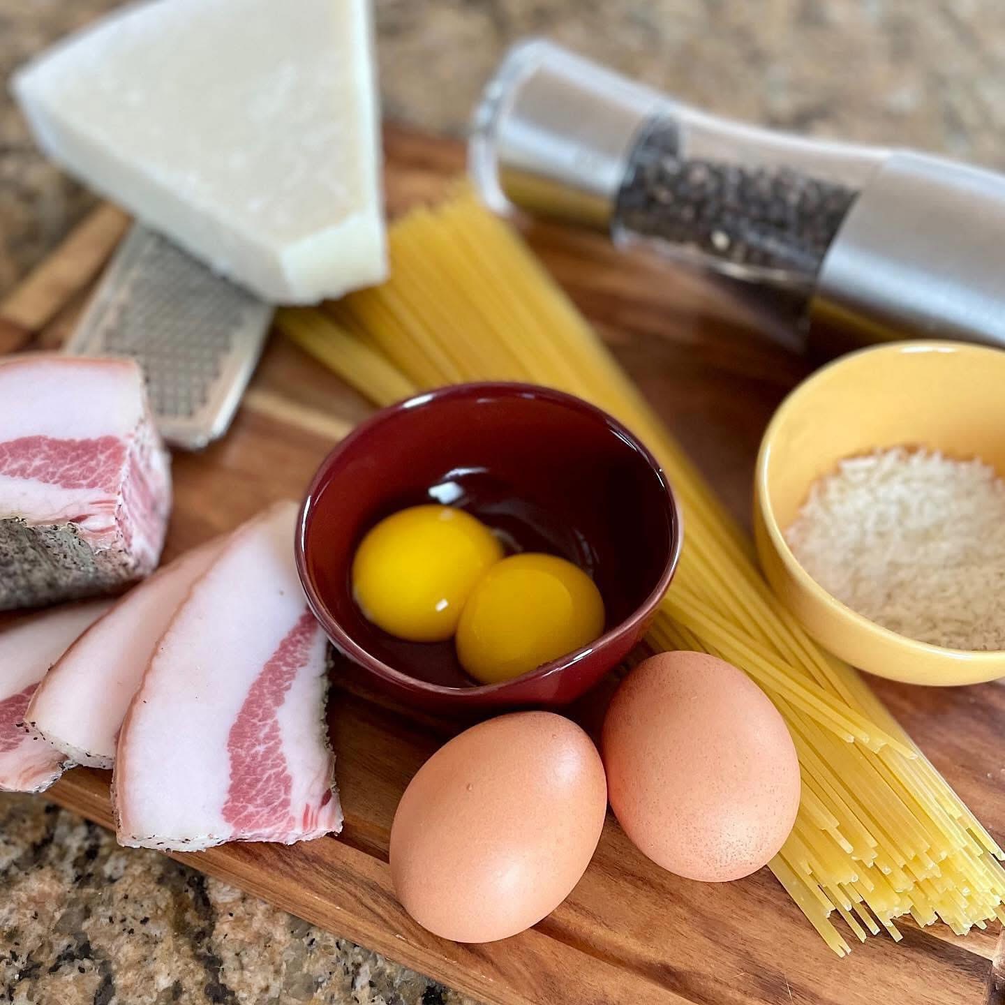Eggs, cheese (Parmigiano or Pecorino Romano specifically), guanciale or pancetta and black pepper are the simple ingredients that make up one of the greatest spaghetti dishes in existence (at least in my humble opinion).