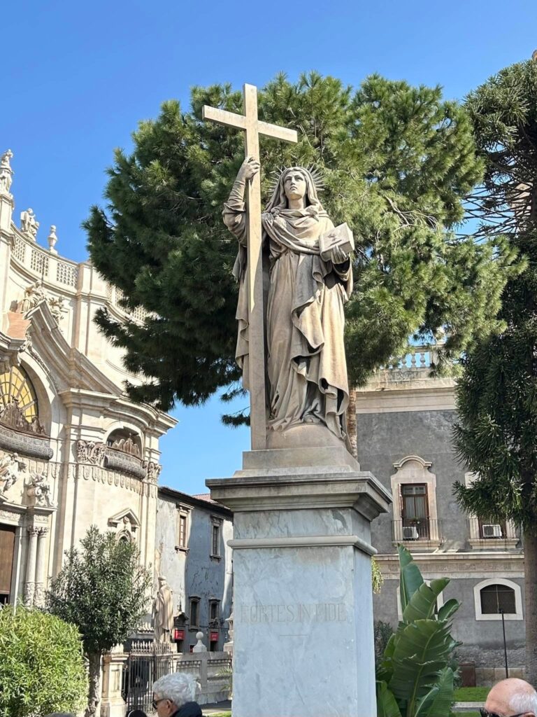 February 5th is the feast day of Sant’Agata (Agatha) one of the most highly venerated virgin martyrs of Christian antiquity. I learned of Sant’Agata just last year when I attended an event organized in her honour (shoutout to Tre Mari Bakery and That Nonna Life). That education was further enhanced when I visited the city of her patronage, Catania. According to legend,15-year-old Agata, made a vow of virginity to the Lord. In maintaining that vow, she was said to have rejected the amorous advances of the Roman prefect Quintianus. Though persistent, the local governor could not turn her away from her vow and exacted his revenge on her by reporting her to the authorities as a Christian to be subjugated during the Decian persecution (250–253). Quintianus believed that once Agata was faced with torture and possible death, she would give in to him, but she simply reaffirmed her faith.