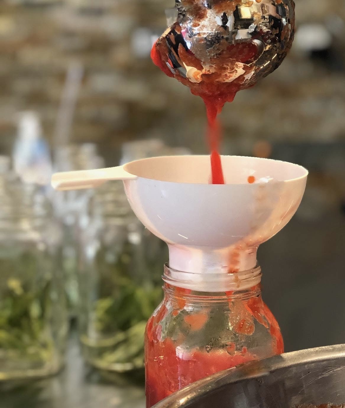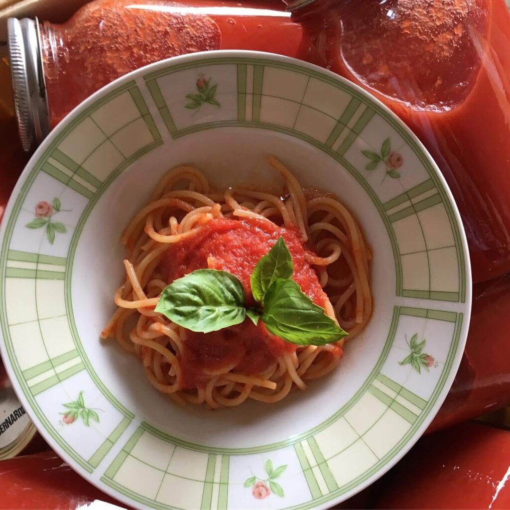 The process typically unfolds by bathing our bright red Romas, slicing them down the middle and blanching them before pureeing them into sauce. Next, red hot streams of passata are poured into mason jars lined with fragrant basil leaves and then boiled for preservation. The greatest reward at the end of this process, another annual tradition; gathering around the table to enjoy the fruits of our labor generously ladled over a bowl of pasta and accompanied by a glass of vino. This becomes the first of many Sunday sugos shared throughout the year that follows.